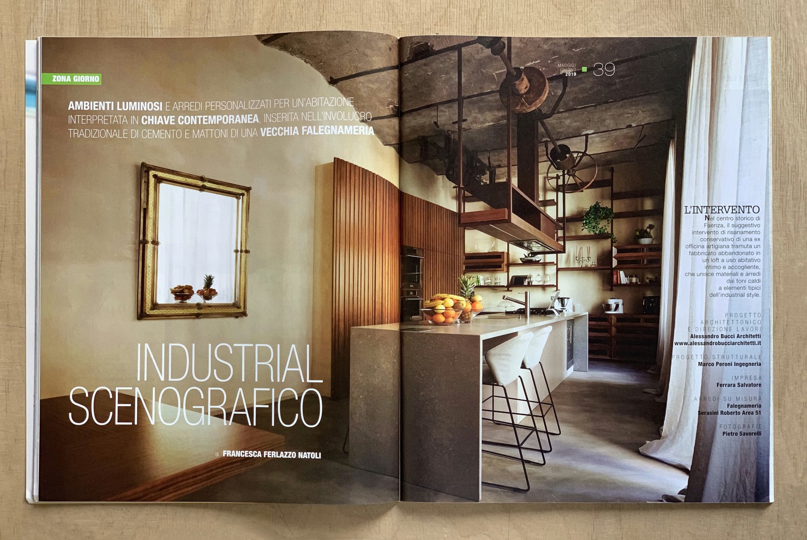 "Ambienti luminosi e arredi personalizzati per un'abitazione interpretata in chiave contemporanea, inserita nell'involucro tradizionale di cemento e mattoni a vista di una vecchia falegnameria"